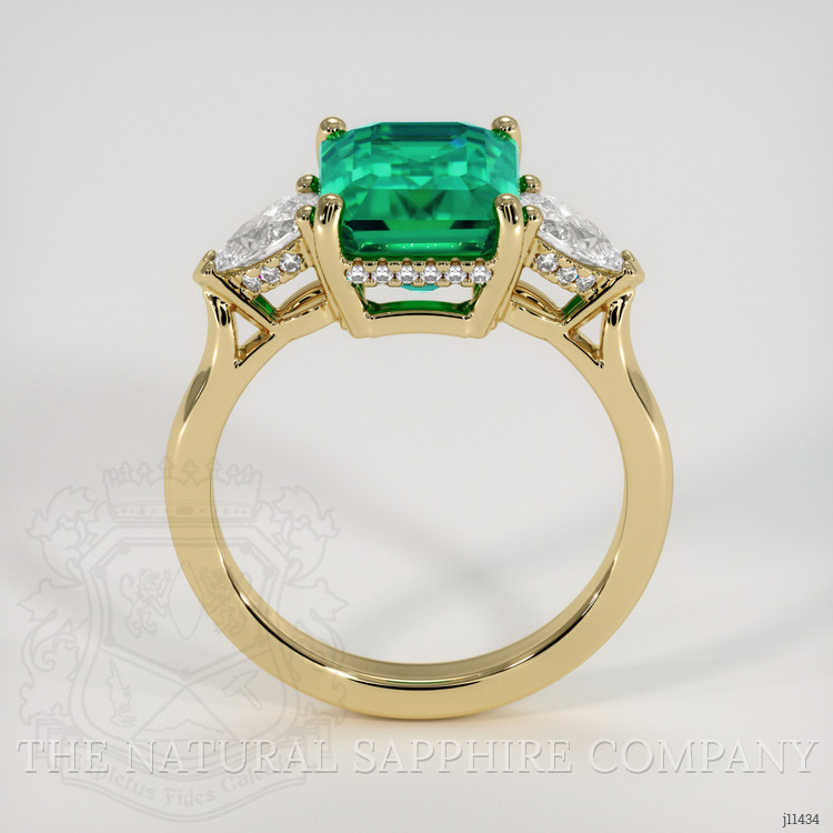 Experience the allure of timeless elegance with this exquisite ring, set entirely in prestigious 18K yellow gold, designed to captivate the admiration of gemstone connoisseurs. Central to its charm is a stunning emerald, radiating an intense green hue that speaks volumes of its natural origin. Unlike many gemstones on the market, this particular emerald requires minimal enhancement, allowing its innate beauty to take center stage. Subtlety is at the heart of its appeal, where its natural inclusions—often referred to as the jardin, or garden—serve as testament to its authenticity and natural formation. This vivid green gem showcases a remarkable clarity that gracefully reflects light, a feature rarely found in such bold and richly colored emeralds.