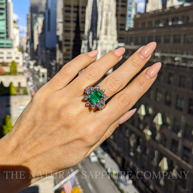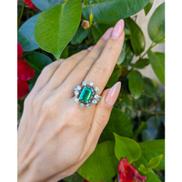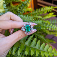 This ring is well suited to mark a new beginning, because its visual language and material choices convey renewal and lasting intent. The emerald green suggests the first unfurling of spring leaves, a clear signal of growth and regeneration, and the emerald cut offers orderly geometry that speaks to clarity of purpose and thoughtful direction. The surrounding diamonds reflect and amplify light, symbolizing small moments of insight and support that frame a larger transformation, and the platinum mounting provides a steadfast foundation for change that is meant to endure. Worn at a milestone, this ring can signal a conscious move into a new chapter, a commitment to personal evolution, or the formal recognition of a redefined partnership, and its classic silhouette allows the piece to remain relevant as life circumstances evolve. The workmanship and choice of materials are intended to honor beginnings with durability and restraint, enabling the ring to carry memory and meaning forward, from the moment of presentation to generations that follow.