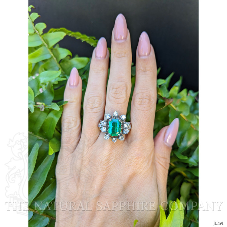3.50 Ct. Emerald Natural Diamond Antique Style Ring, Platinum 950