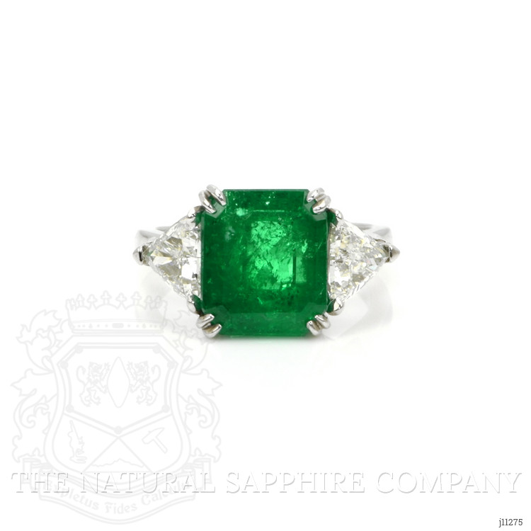 4.77 Ct. Emerald Natural Diamond Three Stone Ring, Platinum 950