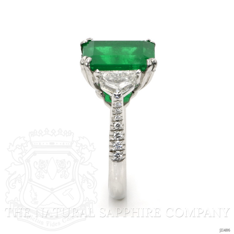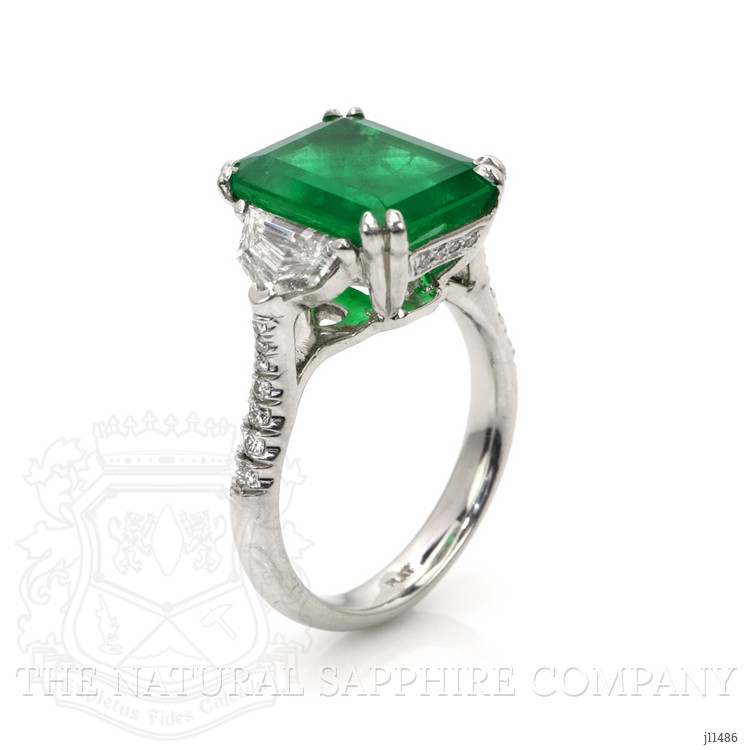 5.48 Ct. Emerald Natural Diamond Three Stone Ring, Platinum 950