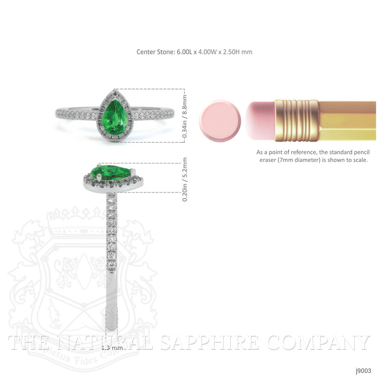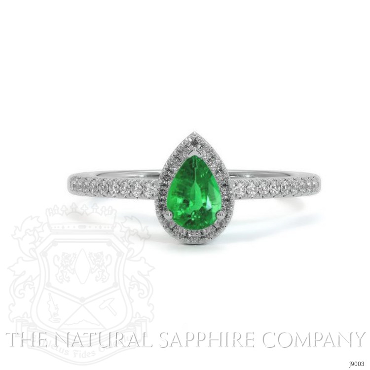 The Natural Emerald Company presents a meticulously crafted ring that embodies the finest aspects of jewelry artistry, designed for those with an appreciation for precision and quality. At the center of this exquisite ring lies a captivating 0.35 carat pear-shaped green Emerald. Mined from the illustrious deposits of Zambia, this gemstone measures 6.00 x 4.00 x 2.50 mm and is brilliant cut, a technique renowned for maximizing brilliance and fire. Its eye clean clarity grade indicates the exceptional quality of this Emerald, free from inclusions visible to the unaided eye, which allows the deep, rich green hue to resonate with vivid intensity. Further enhancing this visual spectacle is the excellent polish, ensuring that every facet reflects light with remarkable clarity and vigor.