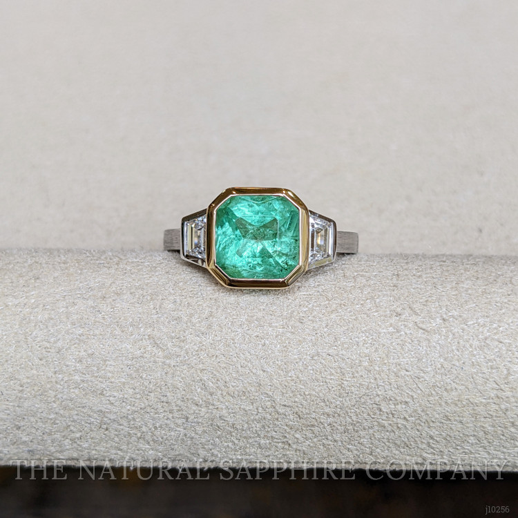Primary Stone Details, Emerald, Bright Green, 1.50 Carats, Step Cut, Flawless Clarity Diamond Stone Details, Two Step Cut Diamonds, 0.5 Carats Each, Near Colorless, VVS Clarity Jewelry Category, Ring Metal Type, 18K White Gold and 18K Yellow Gold Style, Two-Tone Modern ClassicThis ring is not just an accessory. It is a powerful symbol of love, memory, and personal identity. The allure of a stunning emerald catches the eye, setting the tone for elegance and sophistication. Emeralds are known for their vibrant, deep green hues. They have long been associated with renewal and growth, providing a sense of balance and harmony to the wearer. Set between two near-colorless diamonds, the emerald is brilliantly framed and highlighted, adding a unique charm to this exquisite piece. Crafted entirely from 18K white gold and 18K yellow gold, the ring features a sophisticated and timeless two-tone design. White gold is celebrated for its modern appeal and sleek look, giving the ring a contemporary edge, while the yellow gold provides a classic warmth. Together, they create a harmonious balance that enhances the beauty of the gemstones.Wearing this ring is an experience of its own. It carries deep emotional significance, transforming it into a treasured keepsake that holds personal stories and cherished memories. Whether as a symbol of commitment in a romantic relationship or as a self-purchase to celebrate a personal milestone, this ring becomes a part of the wearer's identity, a constant reminder of significant moments in life.This isn't just a piece of jewelry; it is an expression of love, life, and individuality. Every time you glance at it, you are reminded of where you have been and where you are heading. Silky smooth, perfectly crafted, and intricately designed, this emerald and diamond ring stands as a testament to the finest craftsmanship and enduring beauty. This ring is more than just a luxury—it is a lifelong companion.