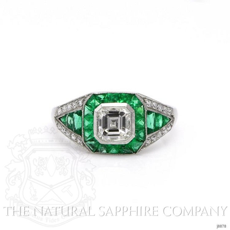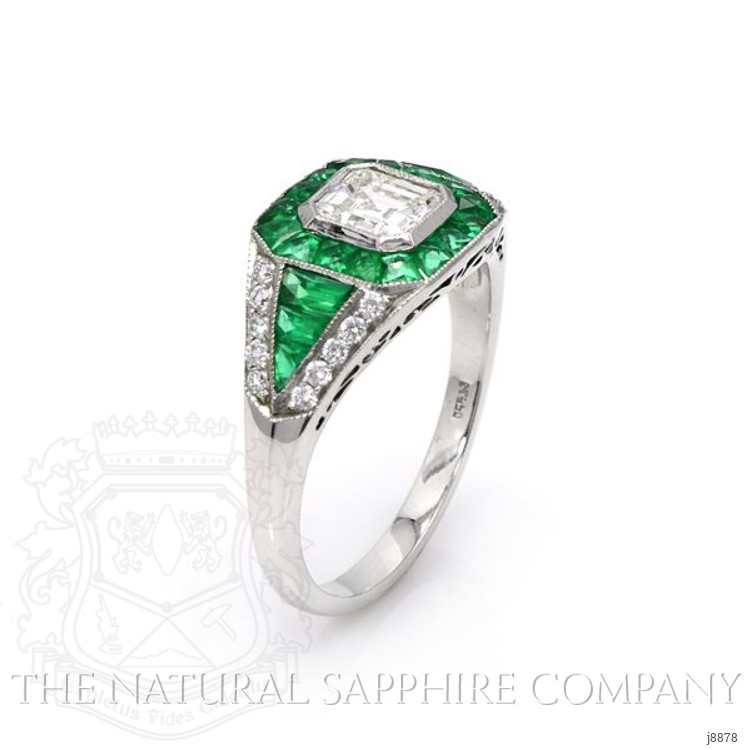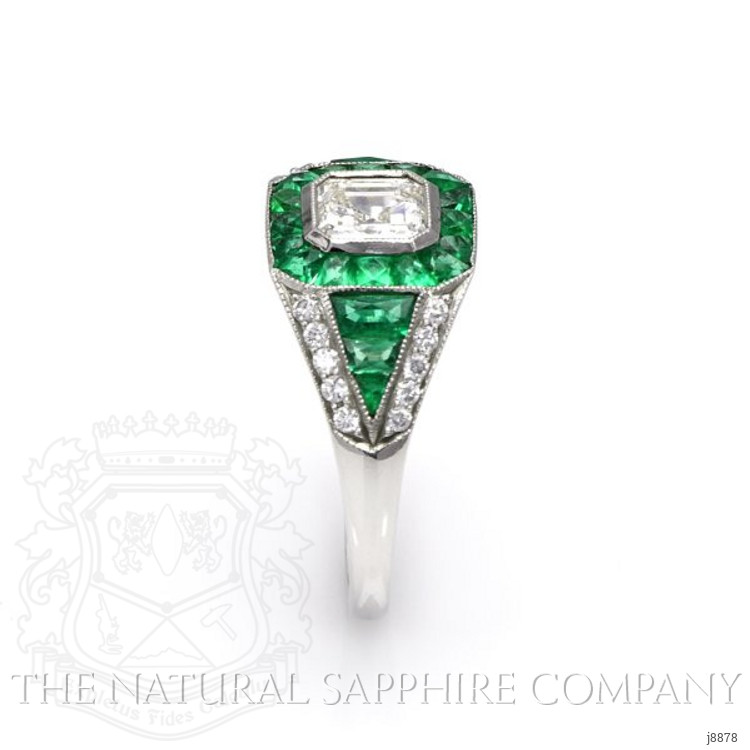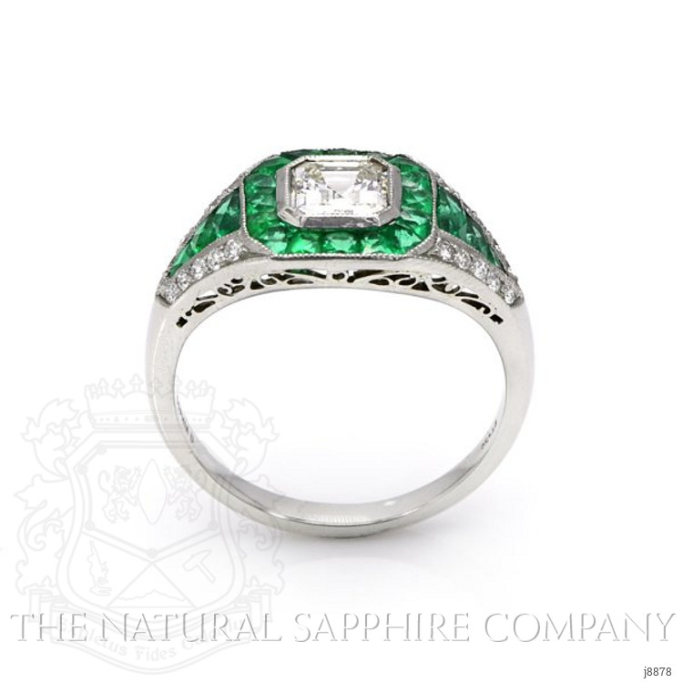 2.49 Ct. Emerald Natural Diamond Antique Style Ring, Platinum 950