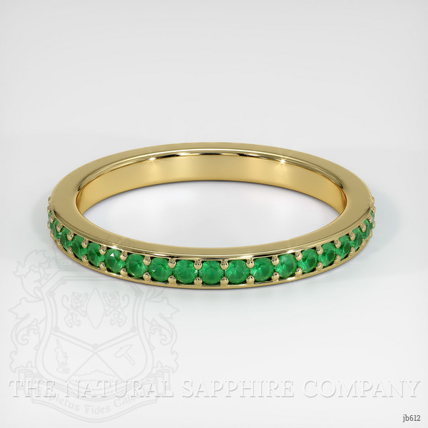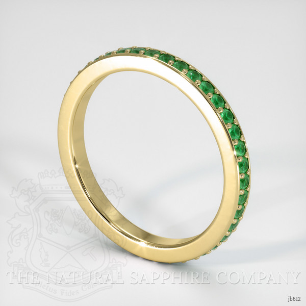 Let this band encircle not only a finger but also an unforgettable journey—with its stories of daydreams and stardust whispers, of promises woven beneath the endless stars. Stackable and versatile, this band invites you to build upon it dreams yet unspoken and love songs yet unsung. The green emeralds, akin to tiny verdant embers, pulsate with the heartbeat of ancient myths and undying love, emphasizing the endless voyage shared by two souls bound together in an eternity of adoration.