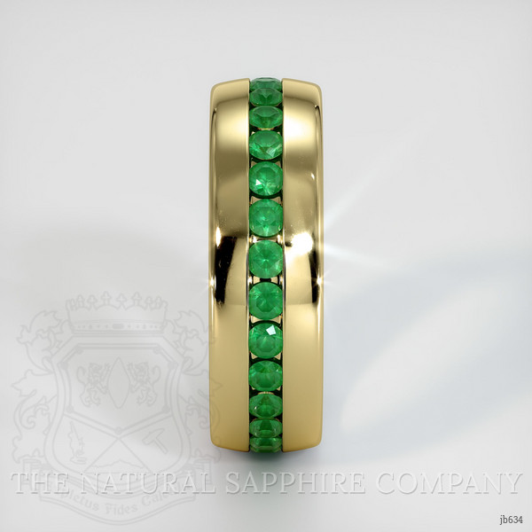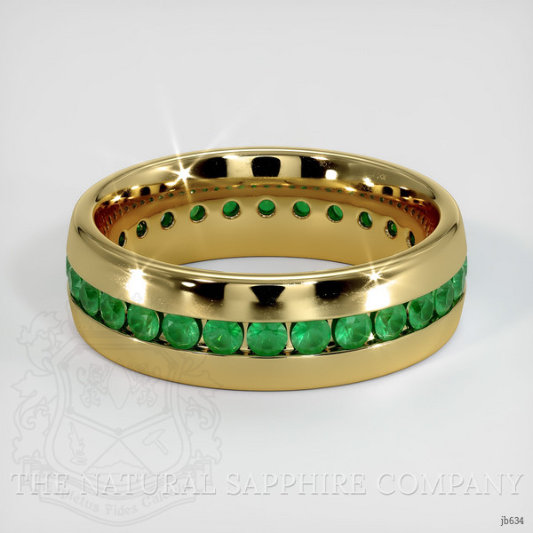 Introducing our exquisite unisex eternity band, a masterpiece that exemplifies elegance and timeless beauty. At the heart of this creation is a vibrant row of round emeralds, meticulously set in a secure channel setting. These side stones, rich in a deep green color, offer a striking contrast against the sleek high polish finish of the band. What sets this piece apart in the market is not just its visual appeal, but also its unparalleled craftsmanship and quality. Unlike other bands that may compromise on the clarity and cut of side stones, our ring guarantees the use of premium emeralds, each hand-selected to ensure brilliant sparkle and uniformity.