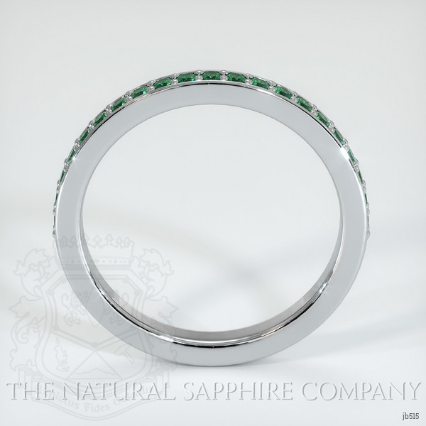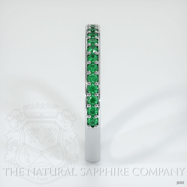 The prong style setting not only secures the stones but also elevates them, allowing each emerald to stand proud on its pedestal. This meticulous setting technique ensures that each stone is presented in its full glory, with nothing to obscure its vibrant color and clarity. The combination of small yet brilliantly cut stones results in a captivating band that can be worn alone or elegantly stacked with other bands to form a personalized statement of style.