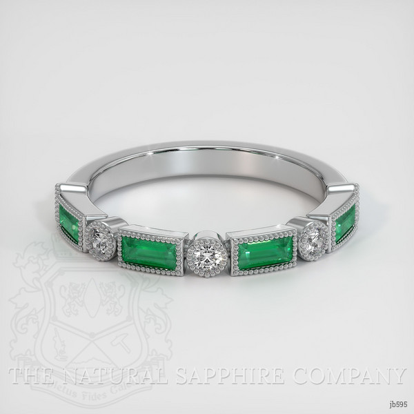 Platinum 950 Emerald and Diamond Antique Style Wedding Band