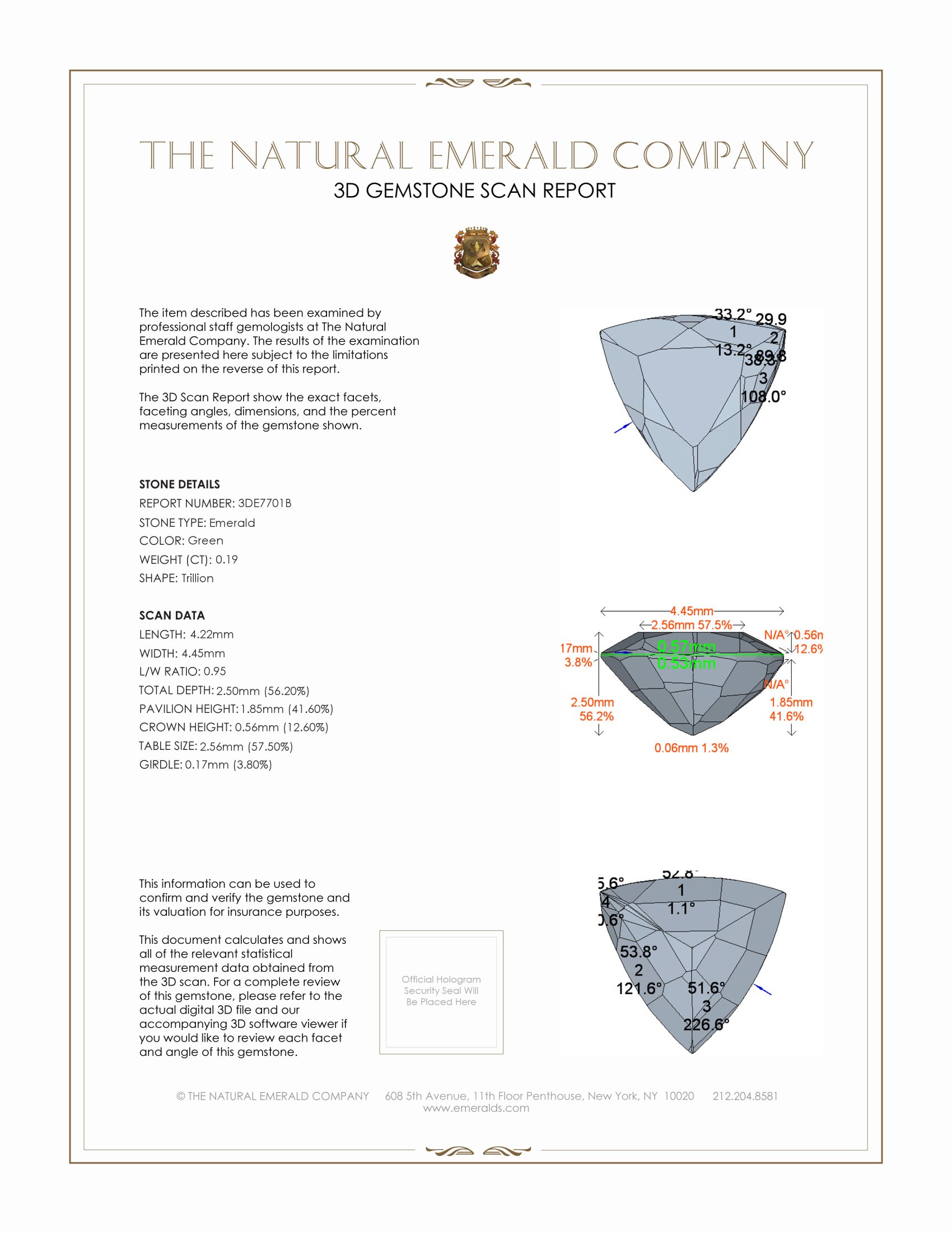 The Earth’s elements slowly amalgamated in melodic harmony, their union giving birth to this mesmerizing green treasure that boasts intense color intensity. During countless millennia, under unimaginable pressure and heat, this emerald slowly took form. Its vibrant, lush hue is reminiscent of the verdant landscapes of Afghanistan and echoes the premium quality our customers have come to love from The Natural Emerald Company. The clarity grade of this emerald, very slightly included as evaluated at eye level, assures that this beauty remains remarkably clear, reflecting and refracting light with an elegantly captivating brilliance.