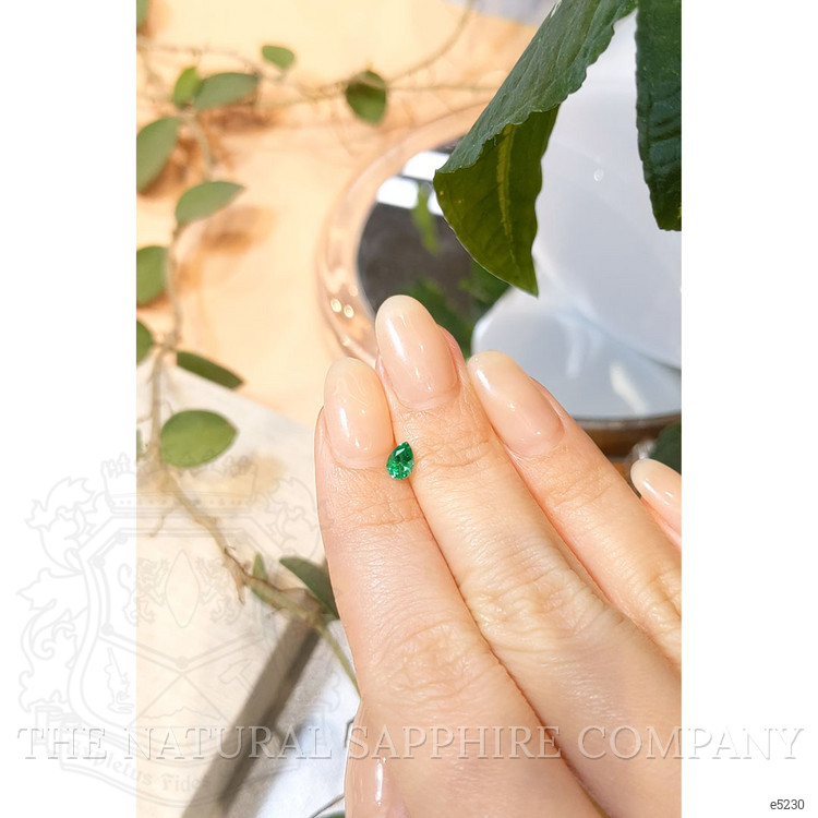 In the heart of Russia's untamed landscapes, where the ethereal glow of the Northern Lights dances across the midnight sky, lay a hidden treasure yearning to be discovered. Amidst the rugged terrain of its ancient, emerald-rich mines, Mother Nature conspired to craft a singular masterpiece of extraordinary allure. From this mystical earth emerged a gemstone that captured the essence of verdant forests and rolling fields, a verdant prism refracting the sublime elegance of its homeland. Introducing the exquisite 0.31 carat pear-shaped emerald, a jewel that whispers tales of the Earth’s most beautiful secrets while illuminating the aura of those fortunate enough to possess it.