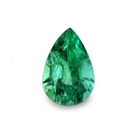 The beautiful, transparent 0.39 carat pear green emerald with the dimensions of 6.15 x 4.11 x 3.33 mm and is brilliant cut, has a clarity grade of very slightly included (graded at eye level), light color intensity, and an excellent polish. The origin of this emerald is Zambia.