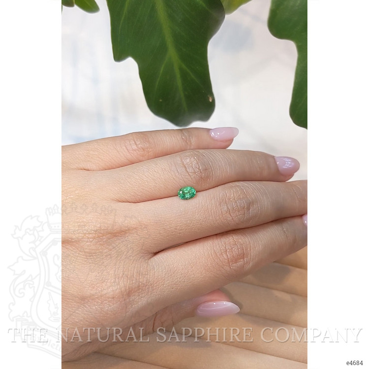 As the emerald transitions from raw stone to the stunning 0.49-carat masterpiece it is today, it moves from the wild embrace of nature to the hands of master artisans. This particular stone, shaped into a classic oval form, measures 6.06 x 4.36 x 3.32 mm. It undergoes the meticulous process of cutting, a delicate contribution that allows its inherent brilliance to unfurl. The mixed brilliant cut applied to this emerald dares to rival the sparkle of the clearest waters or the brilliance of sunlit foliage. Every facet is a tribute to precision, designed to amplify its innate luster and the intense color intensity that Brazil is celebrated for.