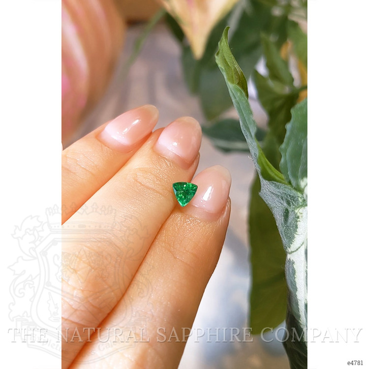 In a world where dreams blend seamlessly with reality, The Natural Emerald Company unveils a treasure forged in the heart of Brazil, an ethereal embodiment of the Earth’s most lavish hues. This exquisite green emerald, a mere whisper of celestial grace, dances in sunlight with all the allure and mystery of a hidden lagoon illumined by the first light of dawn. A trillion in shape, its 0.49 carats of radiant transparency beckon the heart’s desires to journey through time, to trace the whispers of ancient forests where this emerald was birthed.