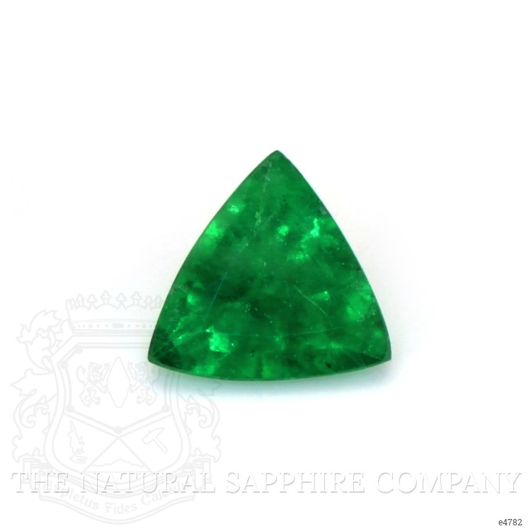 At The Natural Emerald Company, we pride ourselves on offering only the rarest of treasures, and this emerald is no exception. Measuring a discreet yet captivating 0.50 carats, this trillion-shaped gemstone is a testament to precision and beauty. Its dimensions of 5.71 x 5.88 x 3.54 mm radiate a unique symmetry, balancing fire and finesse in a harmony reserved for those with the eye to appreciate such a marvel. The clarity of the gem, slightly included and carefully evaluated at eye level, whispers a promise of authenticity, highlighting the journey from its tumultuous beginnings to its refined glory. Its intense color intensity commands attention, wrapping its beholder in a spectrum of deep, lush greens that evoke the richness of the Brazilian landscapes.