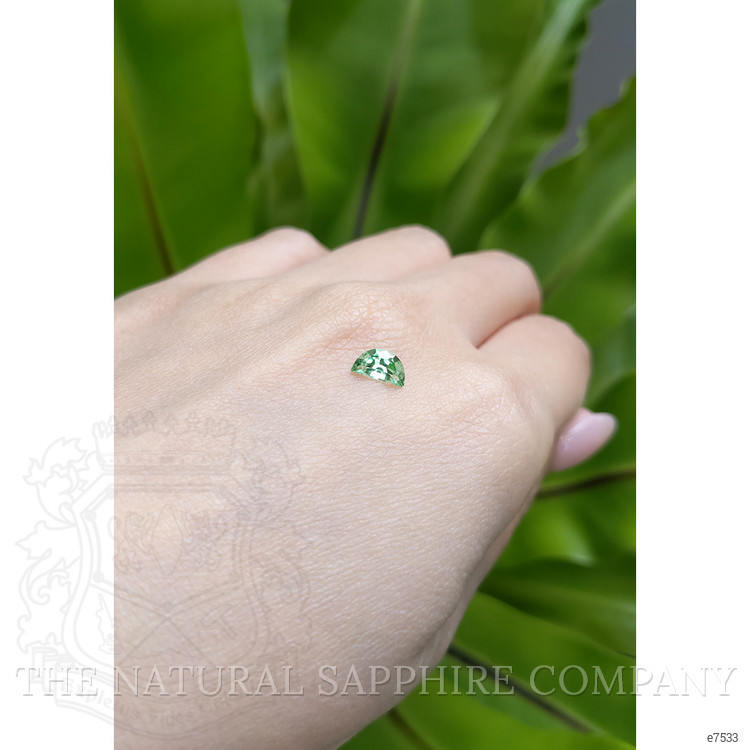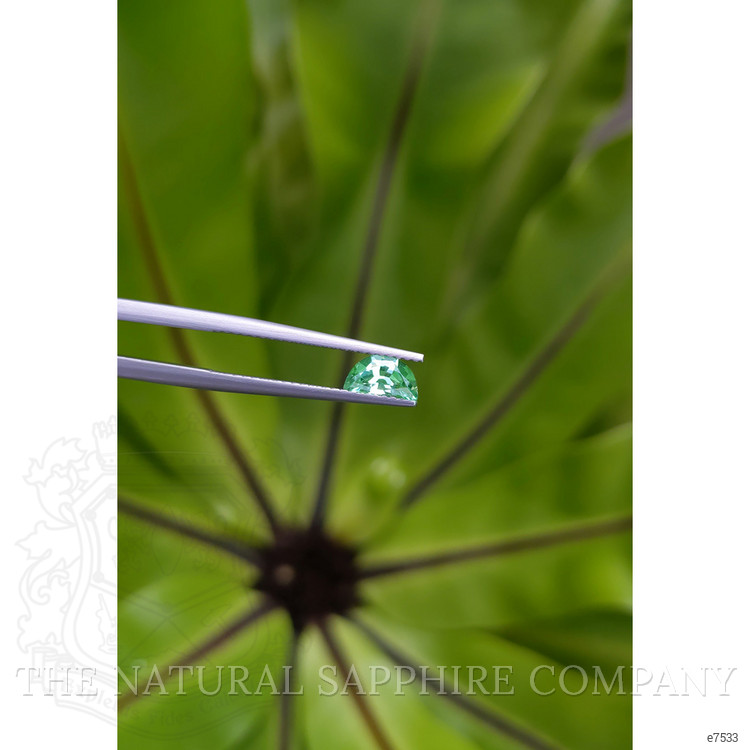 Our emerald, with dimensions of 7.35 x 4.14 x 3.00 mm, is expertly carved into a fancy shape that enhances its natural glow. Its mixed brilliant cut is a masterstroke, allowing each facet to play with light, casting reflections that dance as brilliantly as stars upon the water. Though subtle in its light color intensity, this emerald possesses a quiet charm that outshines with understated elegance. Its clarity grade, very very slightly included, reflects its near-pristine purity, a characteristic that aficionados of gemstones value passionately.
