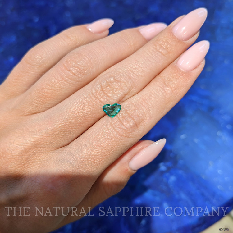 In the heart of the verdant African landscape, amidst the ancient rock formations and lush foliage of Zambia, lies the birthplace of a captivating gem. This land is known not only for its sweeping savannahs but also for its rich abundance of emeralds, each one a testament to the Earth's hidden treasures. Nestled deep within the Zambian earth, a remarkable emerald began its slow, transformative journey millions of years ago. Over time, under the immense pressures and temperatures beneath the earth's crust, it took shape, absorbing the rich minerals that would lend it its extraordinary green hue. This transparent 0.59-carat heart-shaped marvel, measuring 5.53 x 7.41 x 2.41 mm, was born from these mystical processes, awaiting the perfect moment to grace the world above with its presence.