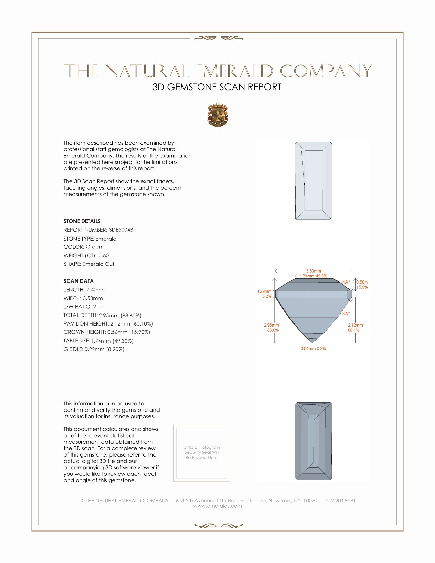 When exploring the market for emeralds, discerning buyers often seek uniqueness, quality, and the assurance that their choice stands out in distinction. Our exquisite 0.60 carat transparent emerald, with its precision emerald cut shape and dimensions of 7.40 x 3.53 x 2.95 mm, epitomizes superior craftsmanship and innate beauty. What truly sets this gemstone apart within an expansive marketplace, brimming with options, is its distinct combination of features that elevates it beyond mere exquisiteness. The cut of this emerald is a defining example of this, embodying precision and artistry that enhances its vibrant character while simultaneously exuding a sophisticated presence.