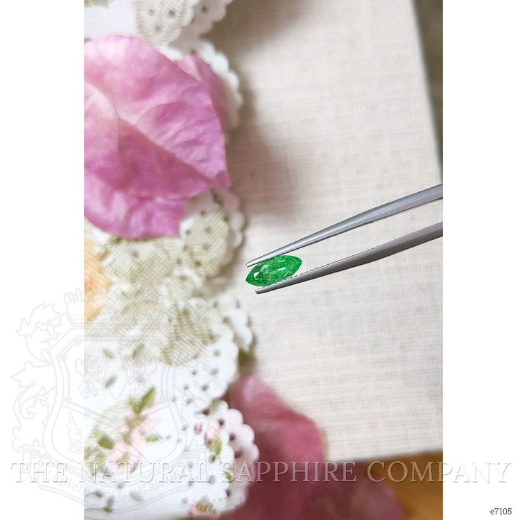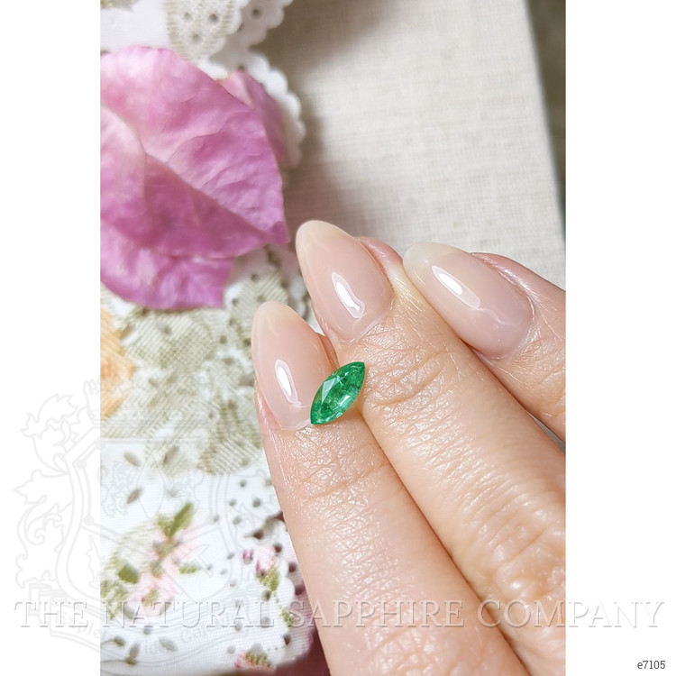 Introducing the exquisite 0.61 carat marquise-shaped green emerald from The Natural Emerald Company. This gemstone epitomizes the perfect balance of elegance and durability, making it an unparalleled choice for daily wear jewelry. The allure of this emerald begins with its remarkable dimensions of 9.37 x 4.16 x 3.05 mm, and its expertly crafted mixed brilliant cut accentuates every facet of its beauty. Unlike other gemstones that may lack the clarity and richness you deserve, this emerald boasts a clarity grade of slightly included, ensuring an impressive visual appeal that meets the eye level with sophistication.