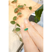 Imagine holding in your hand a treasure that glistens with an ethereal light, a gem that holds within it the secrets of the ages and the promise of future joy. This emerald, a magnificent marquise shape jewel, stretches gracefully with dimensions that reflect perfect symmetry, measuring 9.22 x 4.37 x 3.23 mm. It is a masterpiece crafted by nature, its transparent 0.66 carat form whispering tales of earth's timeless wonders. As you observe the gem more closely, it captivates you with an intense green glow that mirrors the rich landscapes of its Russian origins, offering a portal to a world where nature's magic and elegance reign supreme.
