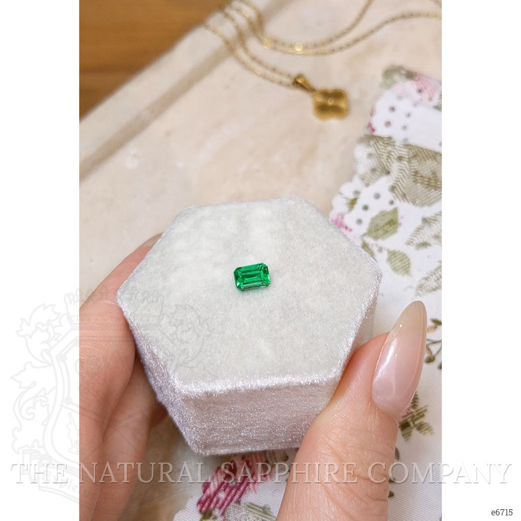 Introducing an unparalleled treasure to the discerning few, we present a rare offering from The Natural Emerald Company, a vision of unparalleled clarity and awe-inspiring beauty. Our exquisite emerald, a 0.70 carat marvel that captures and refracts light with a dazzling brilliance, is a testament to the wonders of nature and the skilled craftsmanship that highlights its unique character. This remarkable gemstone, meticulously fashioned into an emerald cut, stands as a beacon of elegance with dimensions measuring 6.40 x 4.52 x 3.42 mm. Each facet has been shaped with precision to unleash an exceptional display of sparkle and fire, a breathtaking phenomenon that sets this gem apart from all others.