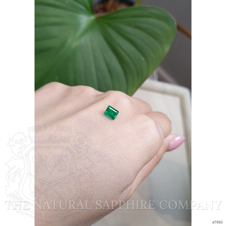 Every facet of this emerald's enchanting presence has been meticulously shaped, revealing a resplendent emerald cut with dimensions of 5.94 x 4.97 x 3.36 mm. This precise artistry enhances its luminous transparency, while the intense green color evokes a sense of depth that recollects the vivid vibrancy of untouched Brazilian jungles. Each glance into its depths allows one to lose themselves in a miniature world of unparalleled artistry and clarity, emblematic of both substance and sophistication.