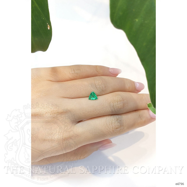 Extracted with meticulous precision and handled with unrivaled care, each emerald tells a story that transcends its physical form. This exquisite gem's journey from the Brazilian earth to a refined masterpiece is no random occurrence. Instead, it promises a legacy of luxury that remains ever so captivating. With dimensions precisely measured at 6.50 x 6.96 x 3.73 mm, this gem features a trillion cut that emphasizes its inherent luminescence. Its clarity grade of slightly included ensures that while displaying its intense color intensity, it maintains a raw and heartfelt connection to its natural state. Each inclusion, each detail, hints at a narrative forged over time. Highlighting every facet, the excellent polish further magnifies the unique allure of this gem. It is as though one glimpses the secrets of the Brazilian earth, captured under a flawless sheen.