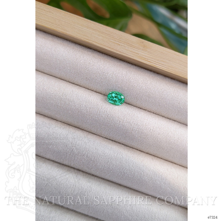 Introducing a remarkable gemstone from The Natural Emerald Company—a stunning transparent bluish-green emerald that captivates with its inherent beauty. Weighing in at 0.74 carats, this exquisite gemstone measures 6.83 x 5.20 x 3.79 mm. The oval shape of the stone presents a classic and timeless design, flawlessly complemented by a mixed brilliant cut that maximizes its sparkle and enhances its natural allure. With a clarity grade of very very slightly included, examined at eye level, any inclusions are virtually imperceptible, ensuring an unblemished view of its rich, medium color intensity. Enhancing the allure further is its excellent polish, which produces a high-gloss finish, adding a level of sophistication and elegance.