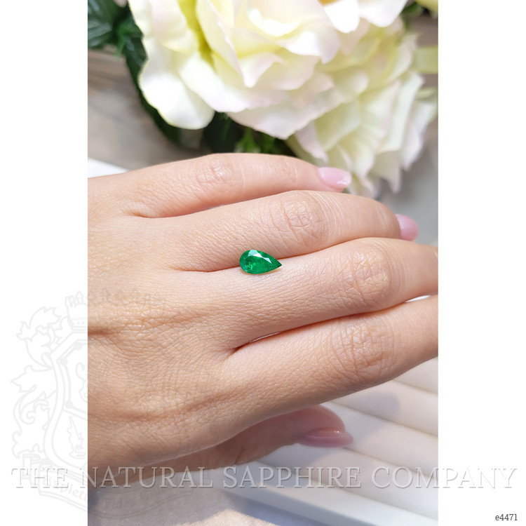 The Natural Emerald Company proudly presents an exquisite gemstone that is sure to capture the attention of discerning buyers and collectors alike. This is a remarkable 0.78 carat green emerald, gracefully shaped in a pear cut with precise dimensions of 9.25 x 5.19 x 3.58 mm. The elegance of its mixed brilliant cut is magnified by its excellent polish, producing an extraordinary play of light that enhances the vibrant aesthetics of this gemstone. Originating from the rich emerald mines of Colombia, known universally for their superior stones, this emerald embodies the classic allure and quality that are highly sought after by industry experts and collectors.