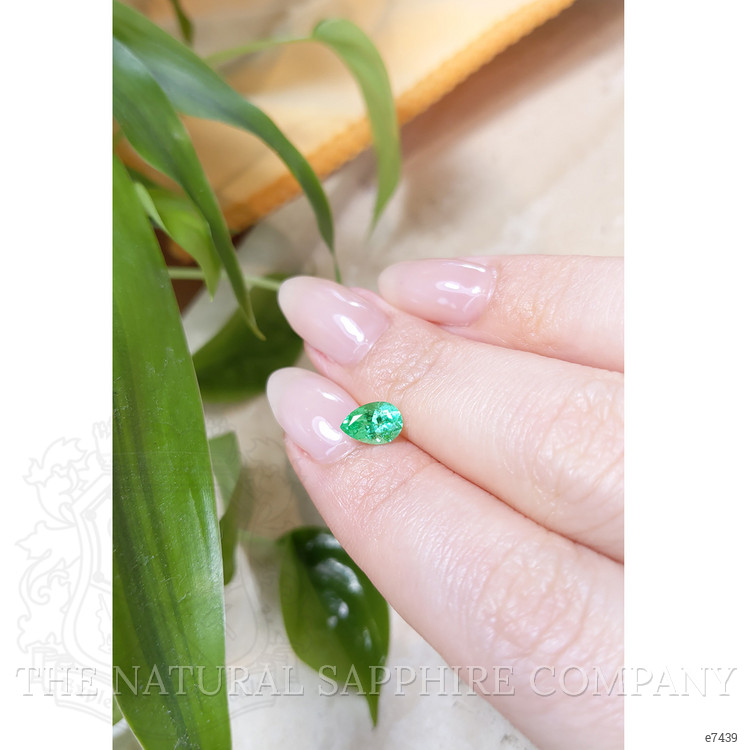 Indulge in the opulent charm of our magnificent 0.79 carat pear-shaped emerald, a gemstone that encapsulates the allure of rare beauty and refined elegance. From the esteemed Russian mines, this emerald resonates with an enchanting medium light color intensity, whispering tales of ancient lands and timeless luxury. A gem crafted by nature and sculpted through man's dedication, its mixed brilliant cut allows it to capture the essence of light and transform it into a dazzling spectacle. This emerald's origins in Russia speak to its authenticity and rarity, showcasing The Natural Emerald Company's impeccable commitment to sourcing gemstones of unparalleled distinction.