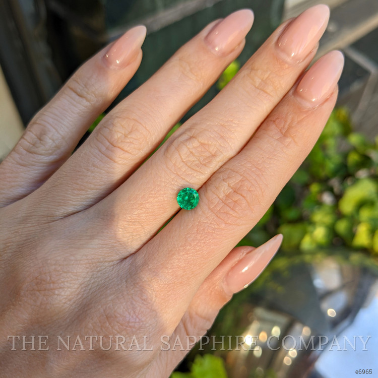 The 0.81 carat round-shaped emerald from The Natural Emerald Company is a true testament to both the Earth's natural beauty and unparalleled craftsmanship. This exquisite gemstone, weighing precisely 0.81 carats, showcases an extraordinary blend of size and quality that signifies premium status in the world of gemstones. Its dimensions, measuring 5.52 x 5.46 x 4.52 mm, not only demonstrate its substantial volume but also highlight its well-proportioned aesthetic appeal. The meticulous attention given to its mixed brilliant cut ensures that the emerald reflects light in a captivating manner, offering a dance of brilliance and fire that any discerning buyer would appreciate.