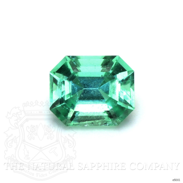 The rich, green color of this emerald possesses medium intense color intensity that captivates the eye with its vibrant hue and pleasing depth. The polished surface of the gemstone enhances its luster, making the emerald gleam with an irresistible allure. Crafted with an excellent polish, the emerald cut shape facilitates a dazzling reflection of light, accentuating the stone's natural beauty and brilliance.