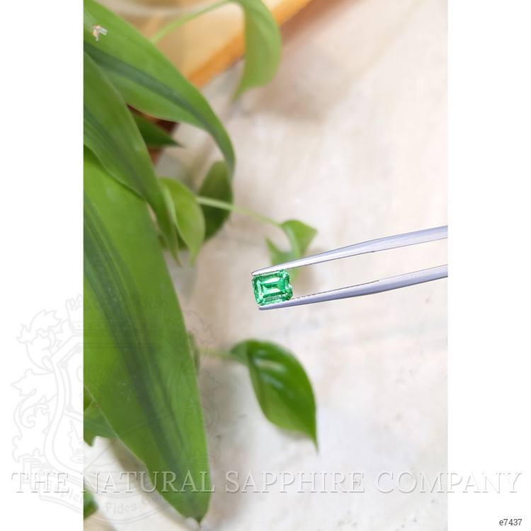 The emerald cut shape breathes life into the stone, its edges capturing and releasing light with an otherworldly grace, like the tranquil streams that wind through serene forests. Its clarity speaks of hidden depths, whispering secrets to the soul with a very slightly included clarity grade, revealing only the mysteries that choose to divulge themselves at eye level. It is a quiet testament to nature's artistry, uniting the medium light color intensity with an excellent polish that reflects visions of paradise in every polished surface.