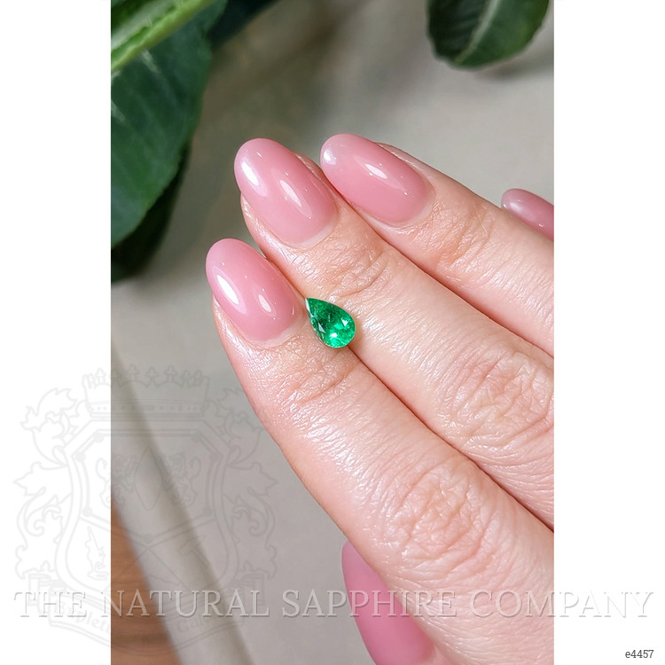 Skillfully shaped in a graceful pear silhouette, this gemstone bears the dimensions of 8.60 x 5.22 x 3.80 mm. But its allure does not lie in shape and weight alone. Its true magic is revealed in the intricate dance of light and color, set off by a mixed brilliant cut that ensures it catches every glimmer. When viewed at eye level, it presents a world of wonder where slight inclusions weave a tapestry of unintended artistry, testament to its natural origins. These inclusions are not imperfections but rather unique fingerprints, each telling a story of the land that formed it, making this emerald’s signature unmistakable.