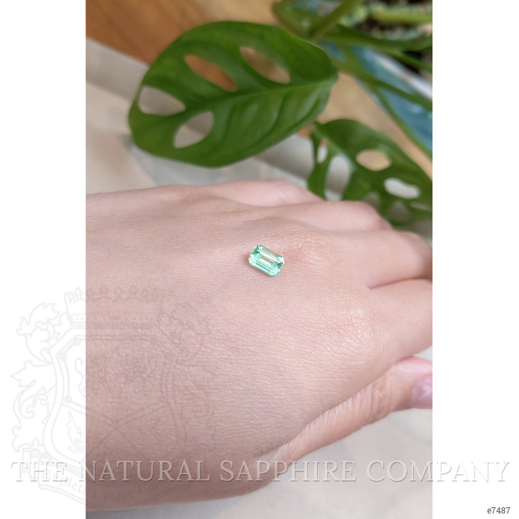 Measuring 6.90 x 4.75 x 3.58 mm, the emerald’s beautifully transparent body hosts its iconic emerald cut, ensuring it stands out with a remarkable geometric precision. This cutting style not only enhances the elegance of the stone but also emphasizes its pure, enchanting green color. It reflects light in a way that creates a subtle yet engaging shimmer, catching the eye and holding the gaze. Carefully polished to excellence, its surface mirrors the level of craftsmanship seen in each piece associated with The Natural Emerald Company.