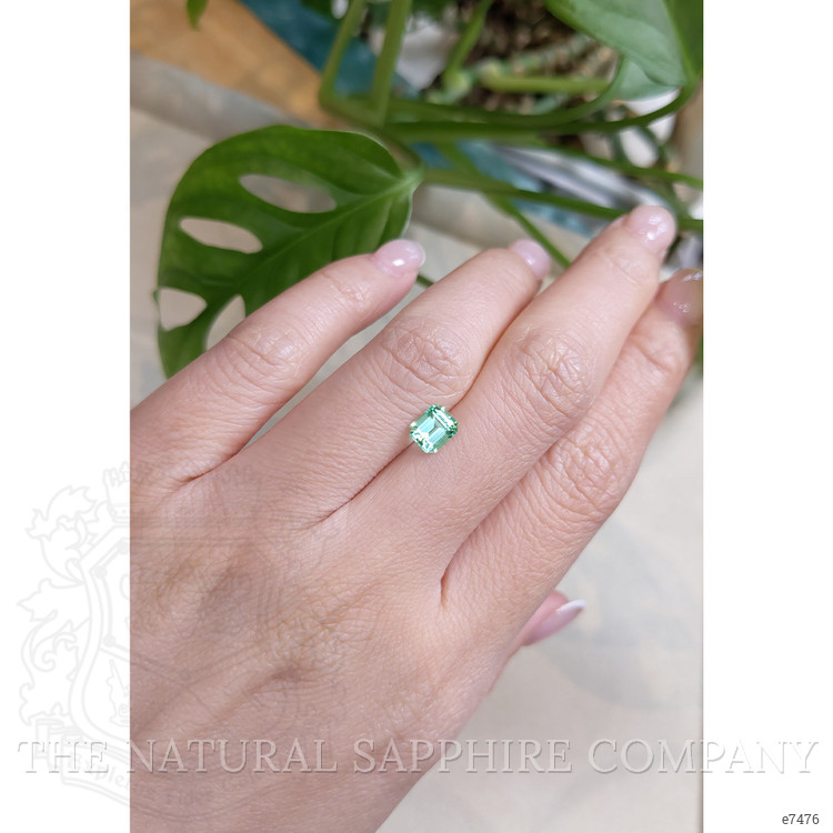 The emerald, with its classic emerald cut, measures 6.21 x 5.19 x 3.89 mm, showcasing a harmonious blend of bluish-green hues that evoke the lush landscapes of an untouched paradise. Its clarity grade, described as very very slightly included, highlights the natural beauty and authenticity of the stone, ensuring that each glance reveals a new facet of its charm. The faint whisper of color intensity adds to its ethereal glow, making it a subtle yet striking choice for those who appreciate understated elegance. Enhanced through standard methods to preserve its original essence, this gemstone’s origin in Russia contributes to its rarity and esteemed value.