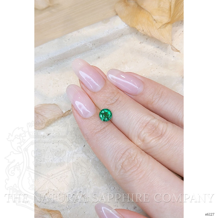 Introducing a captivating gem that embodies both elegance and precision, the 0.83 carat round shape green emerald serves as a testament to the exacting standards upheld by The Natural Emerald Company. This exquisite emerald reveals its flawless quality when observed from any perspective, boasting dimensions of 6.28 x 6.27 x 3.83 mm. At the heart of this gem is a mixed brilliant cut that accentuates its natural appeal, drawing the eye with its unrivaled brilliance. The cut is a marvel of craftsmanship, designed meticulously to optimize the gem's reflective properties while ensuring its strength and durability.