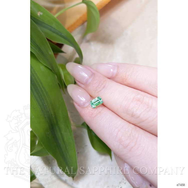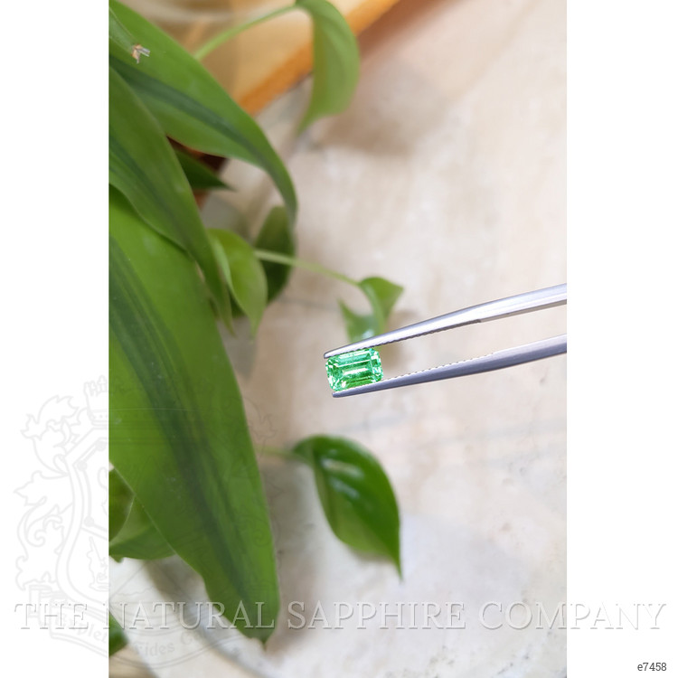 Introducing an exquisite creation from The Natural Emerald Company, this 0.84 carat emerald cut bluish green emerald stands as a testament to the timeless allure and intricate craftsmanship that defines fine gemstone artistry. Measuring precisely 6.91 x 4.39 x 3.73 mm, this transparent gem captures light in a dance that reflects its meticulous emerald cut, a style celebrated for its clean lines and endless depth. The emerald cut's rectangular facets are expertly aligned, allowing the gem's inherent beauty to be showcased in a play of light and shadow that speaks to the skill of the artisans committed to revealing nature’s finest treasures.