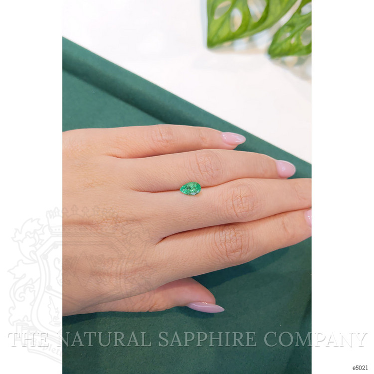Step into a world of opulence and exclusivity with our exquisite 0.88 carat pear-shaped green emerald, artfully presented by The Natural Emerald Company. This breathtaking gem, with dimensions of 8.22 x 5.16 x 4.02 mm, promises to be more than just a precious stone; it is an experience of unparalleled beauty and elegance. Crafted with a mixed brilliant cut, it scintillates brilliantly, capturing the gaze and awe of all who behold it. With a clarity grade of slightly included at eye level, this gemstone possesses an intense color intensity that speaks of rich heritage and sheer prestige, further enhanced by its excellent polish. Its origin from the lush depths of Russia adds another layer of allure, making this emerald not just a gem, but a story, a legend waiting to unfold in your hands.