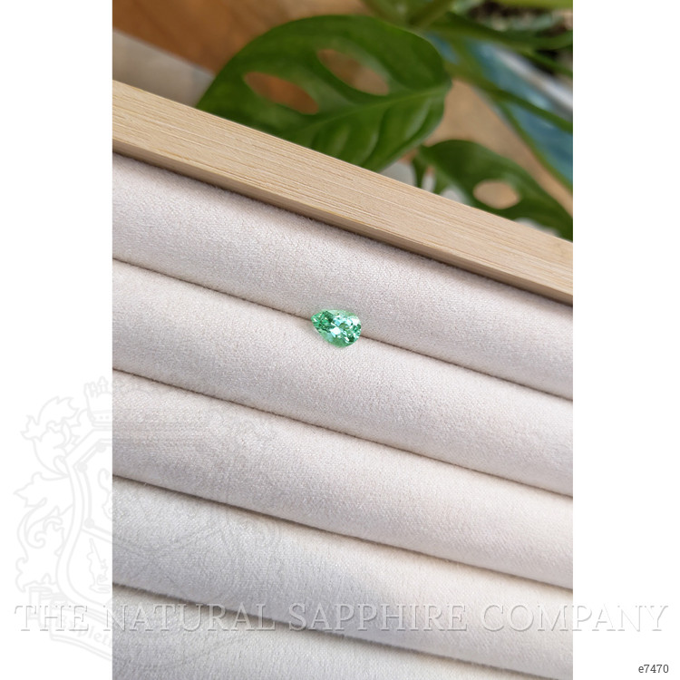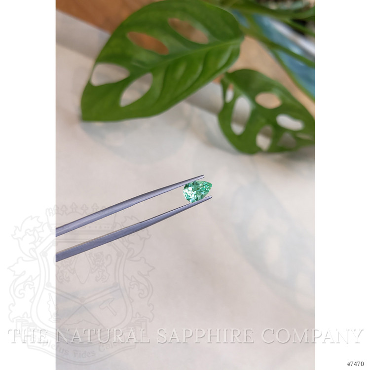 Introducing a masterpiece of nature's enchantment, The Natural Emerald Company proudly presents a radiant testament to elegance and sophistication: the exquisite 0.90 carat pear-shaped bluish-green emerald. Gleaming with the brilliance of a thousand dreams, this gem transcends mere adornment, casting an aura of unparalleled allure. With dimensions of 8.08 x 5.55 x 3.99 mm, this stunning emerald is a rare convergence of nature’s artistry and human ingenuity, destined for the discerning connoisseur.