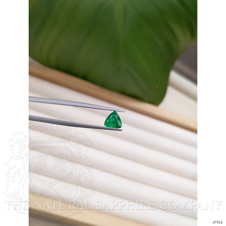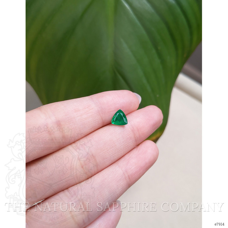 The trillion cut of this emerald enhances its intense color intensity, capturing the vibrant essence of nature at its most flourishing. Each facet is a reflection of the meticulous craftsmanship that elevates this emerald beyond a mere gemstone. Every glance at its brilliance is a reminder of life's most cherishable moments—each sparkle an echo of joy, love, and the promise of forever. Its visual perfection, rendered through an excellent polish and clarity grade of very slightly included, makes it ideal for expressing the depth of emotions, whether as a memorable gift or a personal emblem of sophistication.
