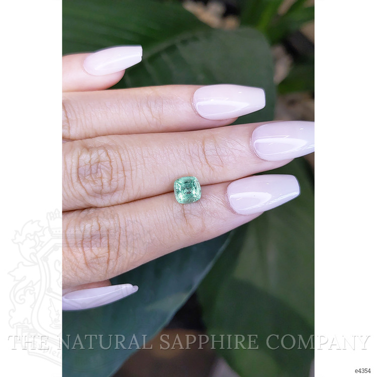 The emerald's cushion shape, with its rounded corners and graceful lines, enhances the story it tells, merging the skilled touch of human art with the natural, verdant hues of the earth. Encompassing dimensions of 6.56 x 6.56 x 4.52 mm, this gemstone does not merely rest as a static entity. Rather, it offers a canvas where light and shade intermingle. Its mixed brilliant cut allows for a dance of light within the stone that echoes the mystery of a forest veiled in early morning mist. While it holds a clarity grade of 'slightly included,' visible at eye level, these subtle inclusions serve as gentle reminders of the emerald's authentic voyage through time, bearing the ancient whispers of its journey from the secluded mines of Brazil to the present day.