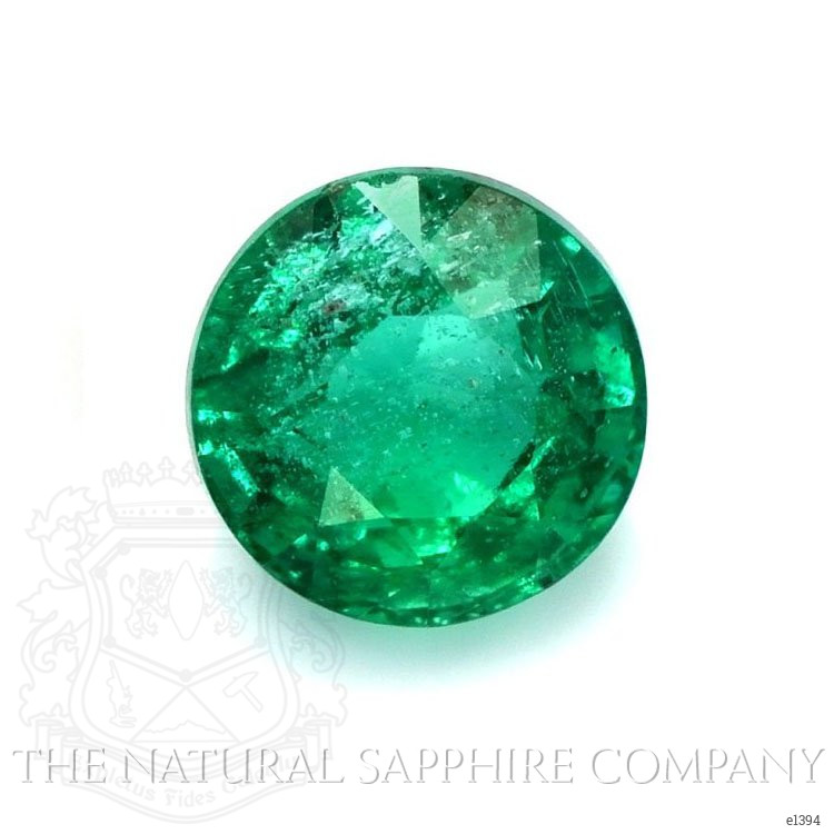 One beautiful transparent 1.08 carat round shape green emerald with dimensions of 6.22 x 6.09 x 4.71 mm. It has a mixed brilliant cut, and a clarity grade of very slightly included (evaluated at eye level), intense color intensity, and an excellent polish. The origin of this emerald is Zambia.