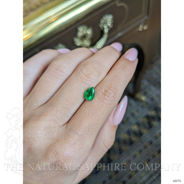 Discover the exquisite beauty of our 1.09 carat pear-shaped green emerald, a masterpiece of nature that fulfills the dreams of those seeking the perfect gemstone. Elegantly crafted with dimensions of 8.07 x 5.73 x 4.45 mm, this transparent emerald embodies the splendor and mystery of the earth's hidden treasures. Its mixed brilliant cut enhances the mesmerizing depths of its vivid green color, creating a dazzling display of sparkle and light. With a clarity grade of very slightly included, this gem captivates with its purity and flawless appearance that is evaluated at eye level. The origin of this exceptional emerald is Zambia, a testament to its authenticity and natural splendor. At The Natural Emerald Company, we promise that your journey to find the perfect gemstone concludes here with this resplendent piece.