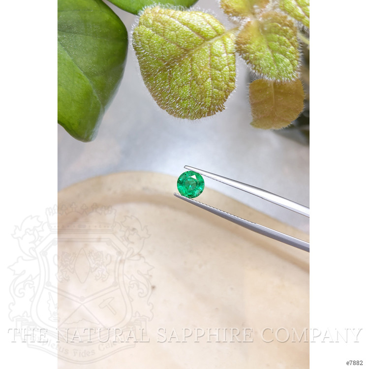 Introducing an exquisite piece of nature’s artistry from The Natural Emerald Company, a captivating green emerald that promises to enrich any collection it graces. This extraordinary gemstone, weighing 1.10 carats and meticulously shaped into a round form, exhibits dimensions of 6.63 x 6.65 x 4.49 mm. Each facet of this magnificent stone has been crafted with precision, featuring a mixed brilliant cut that enhances its inherent beauty and sparkle. Such impeccable craftsmanship results in an emerald that stands as a timeless testament to the enthralling allure of classic elegance. Its slightly included clarity allows for a mesmerizing display of intense color, further augmented by excellent polish that offers a mirror-like finish, setting this emerald apart as an exceptional treasure.