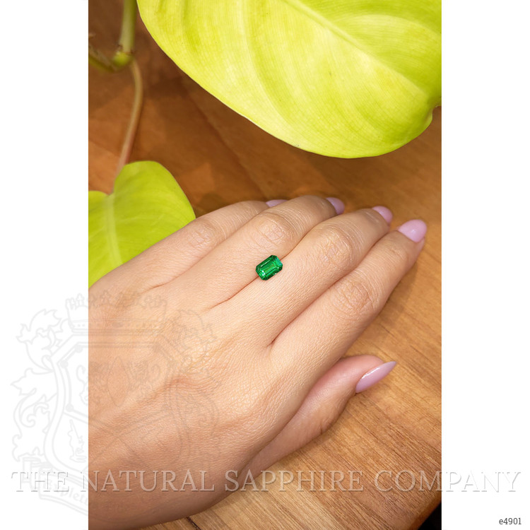 In the enchanting realm of gemstones, where dreams are woven with strands of sunlight and shadows sing the secrets of the earth, there beckons a treasure of unparalleled allure. This exquisite 1.11 carat emerald, shaped with the precision and elegance of an artist’s tender touch, dances with the essence of a thousand emerald isles. Its emerald cut facets place it on a pedestal, allowing it to capture and release light like a gentle whisper of the wind upon silk. The dimensions are but delicate nuances, 7.39 by 5.11 by 4.17 mm, a size that graces the hand like a poetic sonnet whose every stanza tells a tale of eternal hope and dreams unbound.