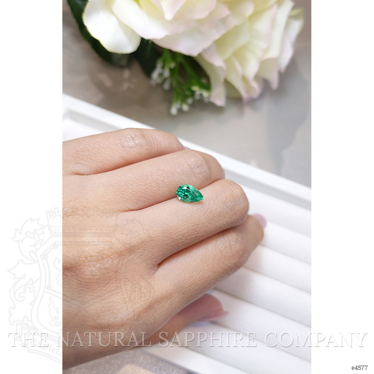 Introducing a magnificent addition to our exclusive collection, a transparent pear-shaped emerald weighing 1.16 carats. Its dimensions of 9.04 x 5.66 x 4.40 mm attest to its impressive presence. For those who appreciate the nuances of high-quality gemstones, this emerald promises to be a remarkable find. Boasting a mixed brilliant cut, this piece reflects light in an enchanting dance of sparkle and shine, outshining more common gemstones such as sapphires and rubies with its unique refractive qualities. The emerald's origin from the renowned mines of Russia brings an additional layer of allure, as Russian emeralds are celebrated for their robust hue and distinctive clarity.