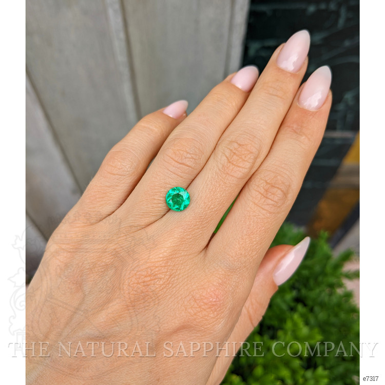 Introducing a stunning centerpiece to any collection, this exquisite 1.18 carat green emerald emanates elegance and timeless beauty. Sourced from the renowned mines of Colombia, famous for producing some of the world's most captivating emeralds, this gem showcases the vivid color intensity that speaks to connoisseurs of fine gemstones. With dimensions of 7.43 x 7.41 x 4.17 mm and a round shape, this emerald promises not only visual appeal but also a sense of history and grandeur. The mixed brilliant cut enhances its natural allure, allowing it to catch light from every angle with an excellent polish that only amplifies its natural glow.