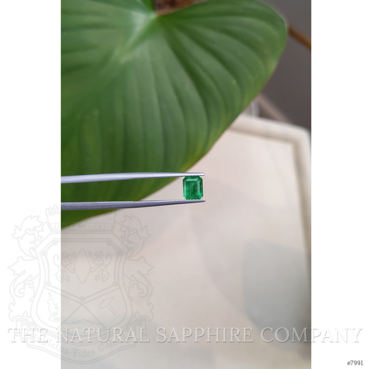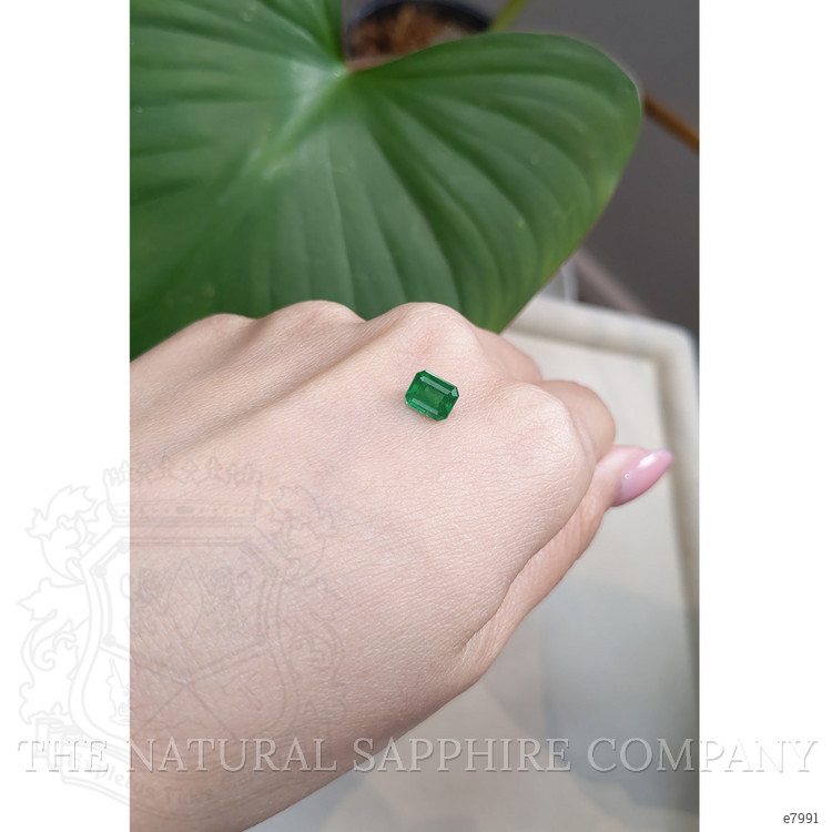 In the lush, vibrant landscapes of Brazil, where nature's bounty unfurls in myriad shades of green, a remarkable journey begins beneath the earth's surface. Here lies the birthplace of a singular, exquisite creation—an emerald of such unparalleled transparency and allure that it seems to capture the depth of the forests above. Our 1.20 carat emerald, masterfully cut into a classic emerald shape, owes its breathtaking beauty to eons of geological artistry. With dimensions of 6.77 x 5.55 x 4.38 mm, this gemstone embodies years of natural perfection, enhanced to highlight its innate brilliance. Its medium intense green hue, coupled with an eye-level clarity grade of very slightly included, ensures each glance reveals a new detail, a fresh marvel.