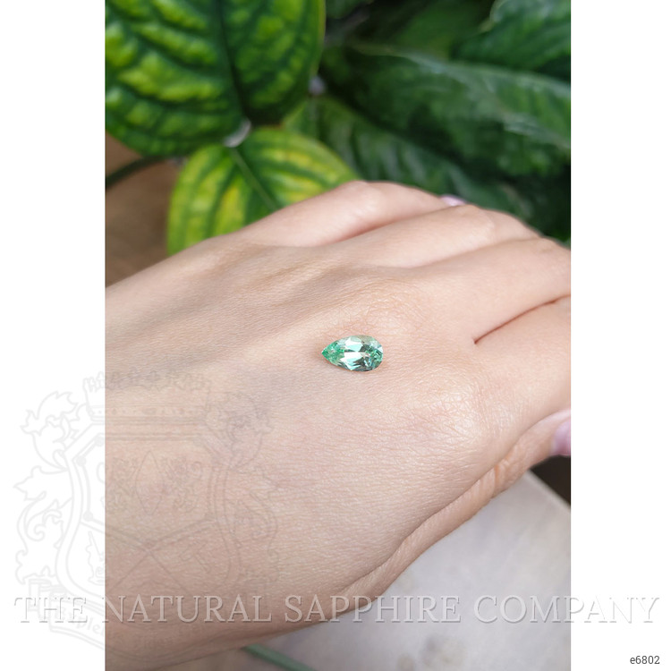 The Natural Emerald Company is proud to present an exquisite gem of unmatched elegance: a transparent 1.21 carat pear-shaped bluish-green emerald. This precious stone boasts dimensions of 9.87 x 5.87 x 4.09 mm, embodying both grace and refinement. It's crafted with a mixed brilliant cut that enhances its inherent brilliance, casting a mesmerizing play of light. The emerald's clarity grade is very slightly included, evaluated at eye level, ensuring that its beauty remains unimpeded to the naked eye. With its light color intensity and excellent polish, this emerald promises a flawless finish that is both captivating and enduring. Notably, it has no enhancements, preserving the stone’s natural allure. Originating from Russia, this gem reflects the quality and heritage synonymous with The Natural Emerald Company.