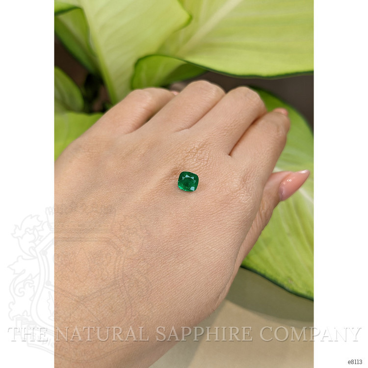 Emeralds have been revered across continents and centuries, treasured by pharaohs, emperors, and poets for their deep association with renewal, wisdom, and enduring beauty, and this exceptional cushion shape gem carries that same lineage. At 1.21 carats, this transparent green emerald presents itself with an elegant presence that is both intimate and commanding, its dimensions of 6.45 x 6.20 x 4.89 mm offering a balanced silhouette that sits beautifully in a range of settings. Cut into a classic cushion outline with a mixed brilliant facet arrangement, the gem harmonizes the soft, rounded profile of an age old form with the scintillating brilliance of contemporary cutting technique. Originating from Zambia, a region celebrated for producing vibrant, clean emeralds with rich chroma, this stone bears the historical weight of traditional mines while reflecting modern standards of cutting and polish. The Natural Emerald Company is proud to present a gem that speaks to the timeless appeal of emeralds, a piece that seems to carry the memory of ancient courts while being perfectly suited to the modern jewelers palette.